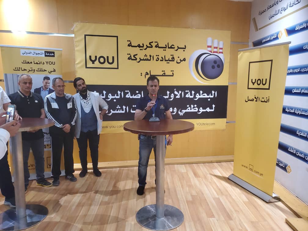 في حفل الافتتاح، ألقى رئيس الاتحاد أحمد جمعان كلمة رحّب فيها بالمشاركين وثمّن دور شركة YOU في دعم وتطوير رياضة البولينج في اليمن، مؤكدًا أن هذه البطولة ستكون فرصة لاكتشاف المواهب والقدرات بين الموظفين.